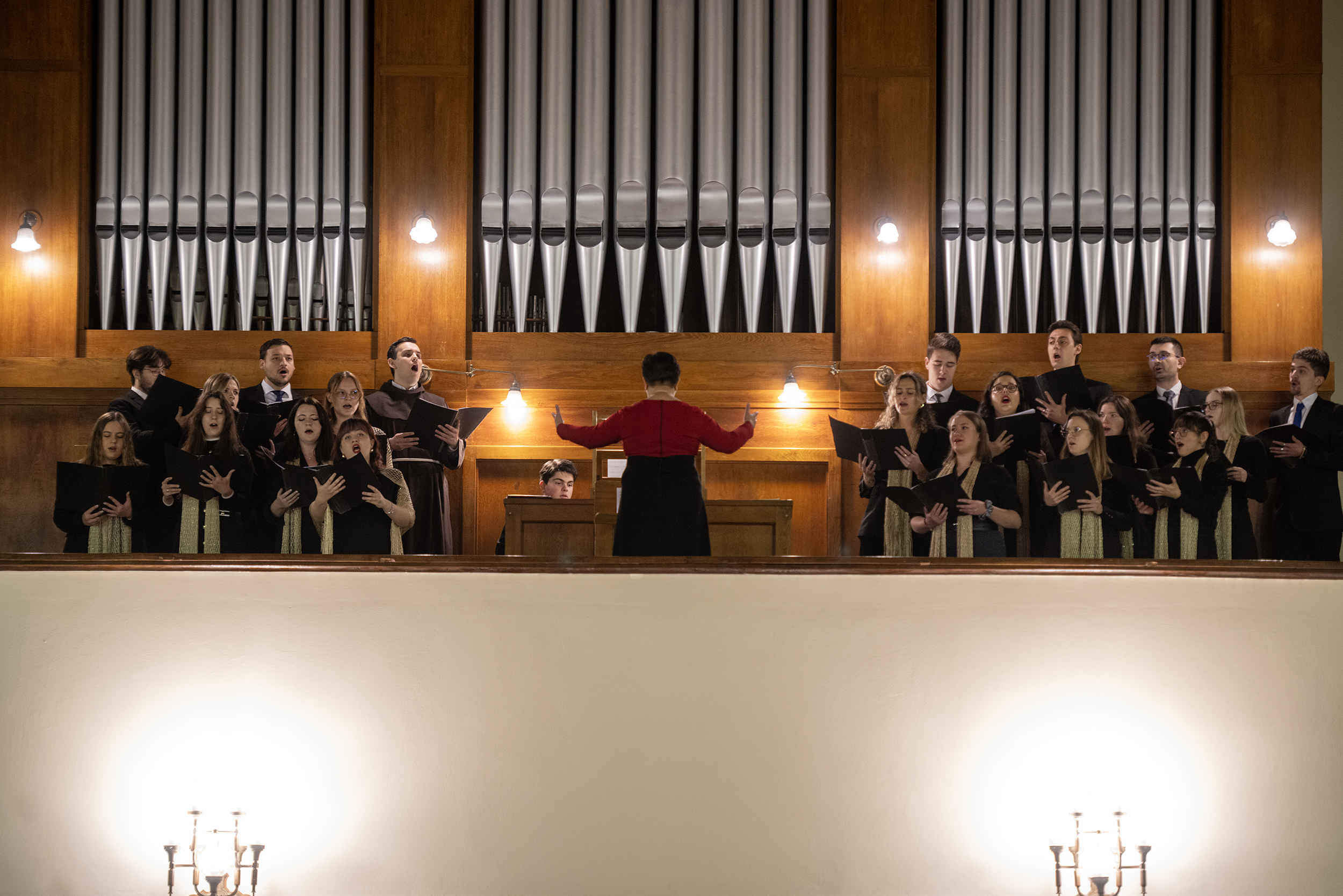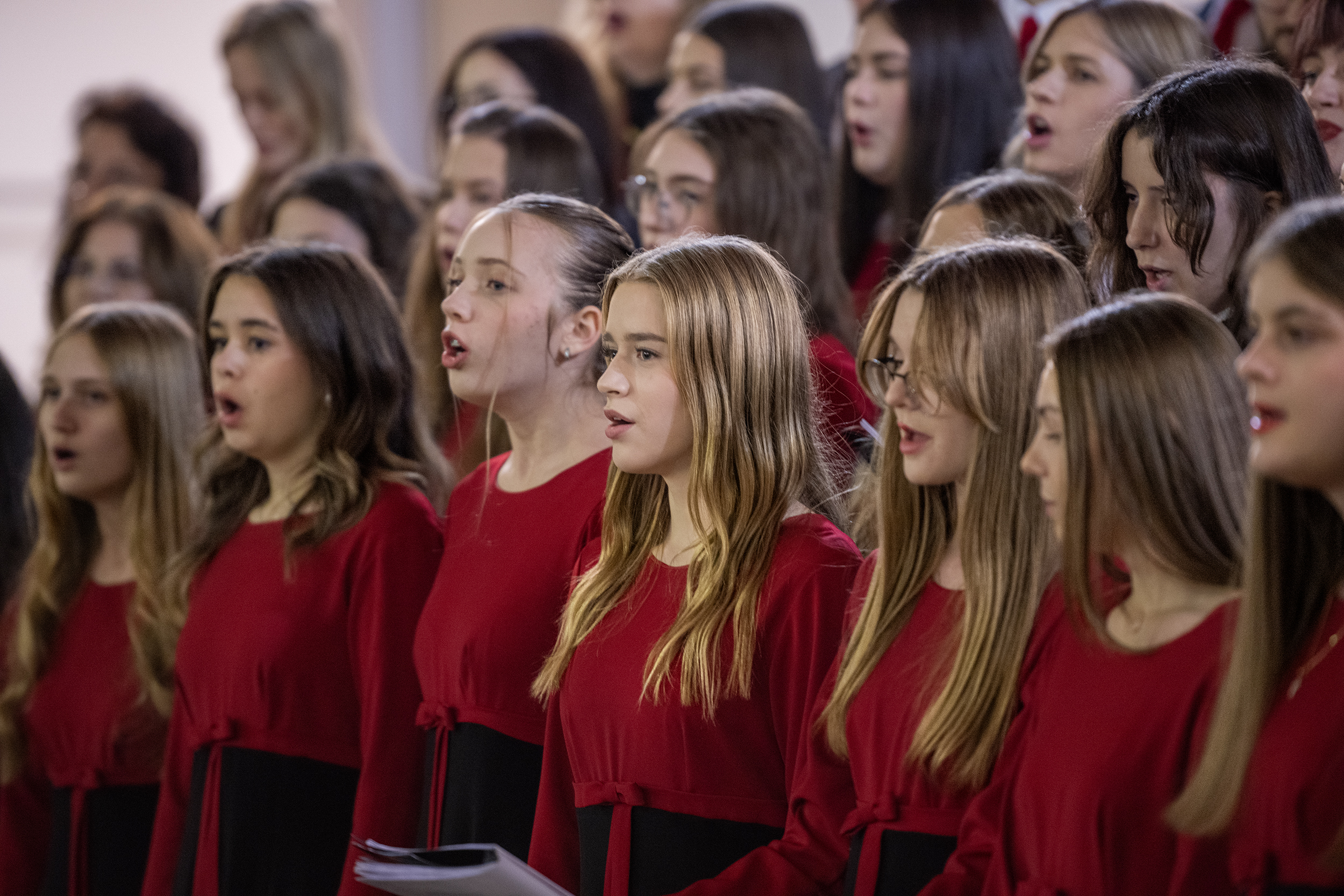 Početak je bio svečani ulaz pjevačkog zbora NKG-a uz kanon “Magnificat”. Voditelji su nas uputili u program, ravnateljica, profesorica Ljuba Duvnjak sve nas je pozdravila, a zatim su se zaredale umjetnine jedna za drugom, a sve pod umjetničkim vodstvom i dirgenstkom palicom neumorne maestre Ankice Juričić, koja je profesorica glazbe u NKG-u. Osim Mješovitog pjevačkog zbora Nadbiskupske klasične gimnazije, nastupili su i bivši učenici okupljeni u zbor “Ex-cantores”. Prema već uvriježenu običaju poseban nastup imao je i profesorski pjevački zbor “Didaskaloi”. Tu su bili i gimanzijski “Nadbiskupski bećari” koji djeluju pod vodstvom profesorice Vinke Bobok. Instrumentalni intermezzo na crkvenim orguljama pružili su nam prof. dr. sc. Mario Perestegi, prijatelj NKG-a-, i već proslavljeni mladi orguljaš Ivan Karol Villa, koji je učenik i član pjevačkog zbor NKG-a. Svojevrsni vrhunac večeri bio je gudački trio uz klavirsku pratnju. Nastupile su učenica Klasične gimnazije Lota Kanceljak i njezine tri sestre: Lucija, Leticija i Lana Karmela, a izvele su adventski napjev: O dođi, dođi, Emanuele u instrumentalnoj obradi njihova oca Gorana Kanceljaka. Upravitelj naše Zaklade, p. Niko Bilić, sa zborom je otpjevao male adventske litanije: Dođi, Gospodine Isuse.